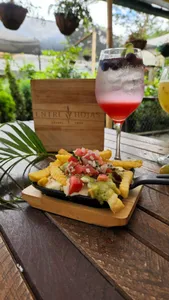 Preparación a base de papas a la francesa, acompañadas con queso mozarella, tocineta, sour cream, guacamole, pico gallo y queso parmesano.
